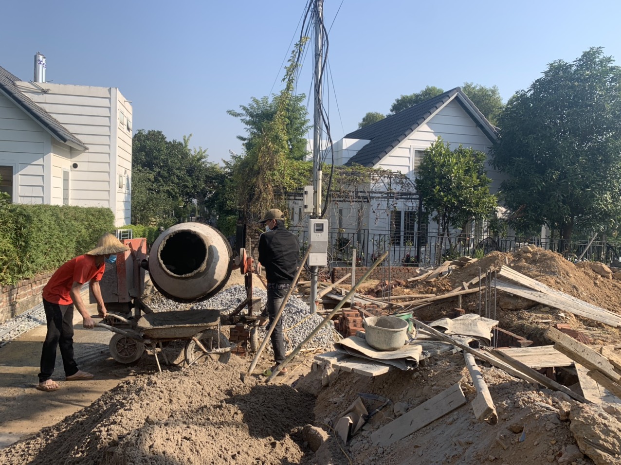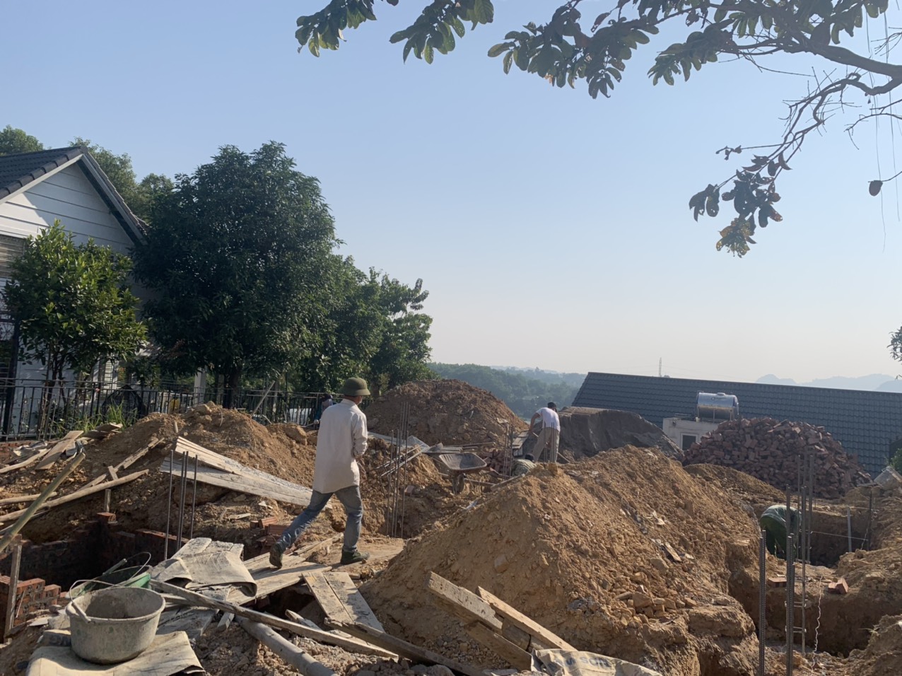 - Đẩy nhanh tiến độ hoàn thiện phần thô, chuẩn bị tiến hành đo đạc sân vườn và đào móng