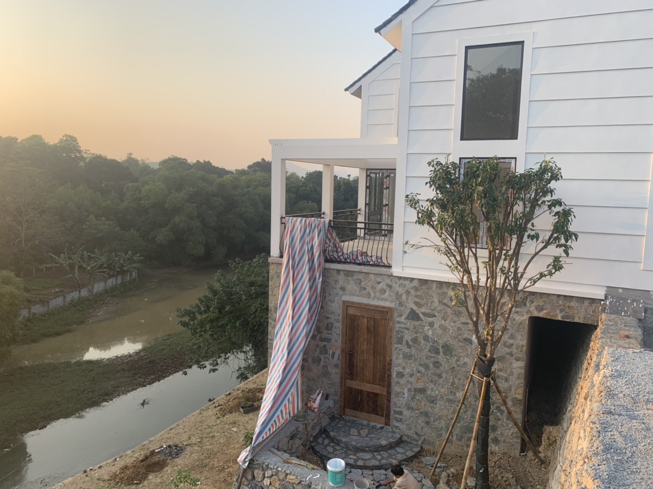 - Hiên của BT hướng ra ven suối, nơi có tầm view đáng để mỗi sáng dậy sớm ngắm bình
