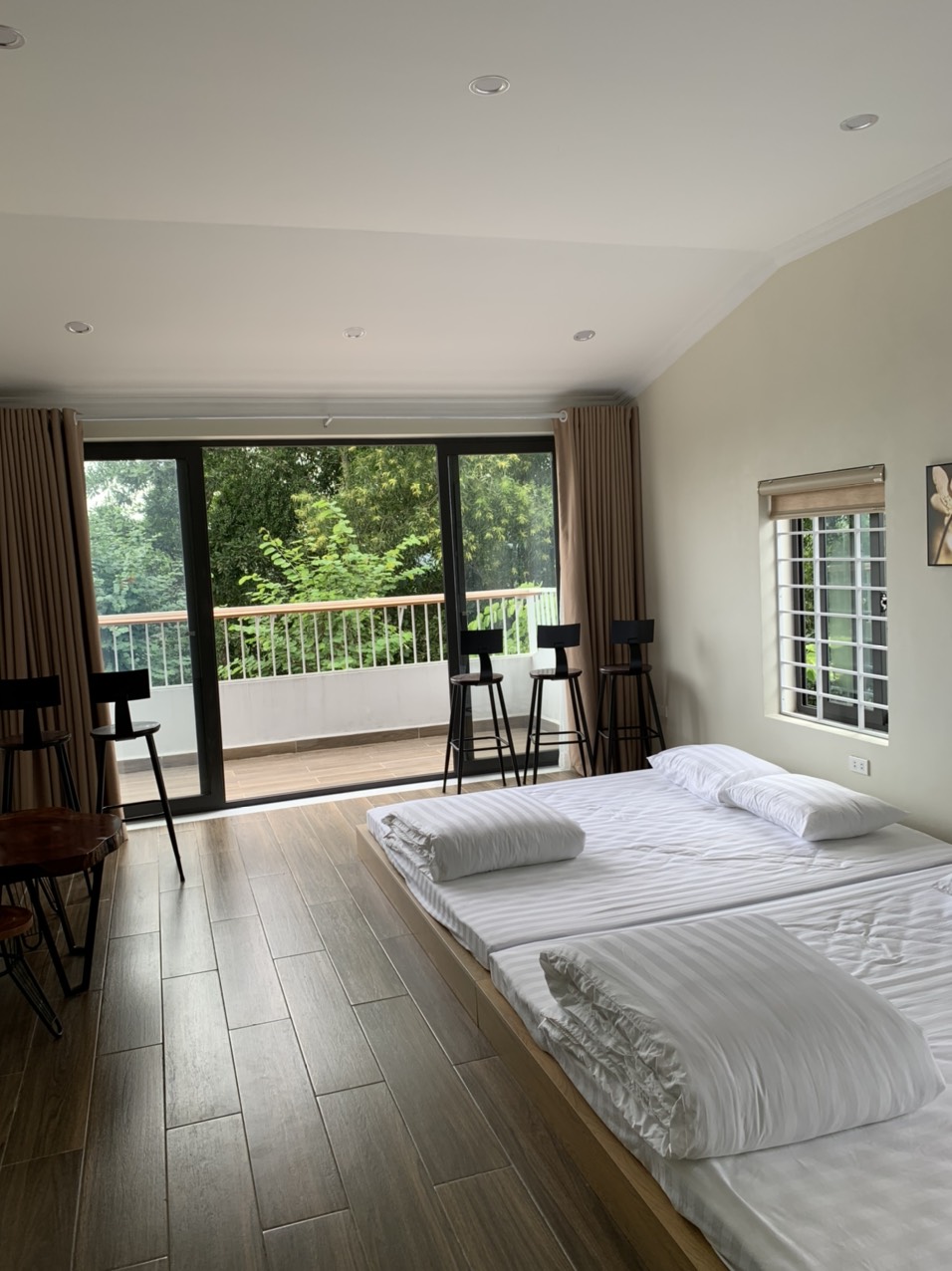 - Cửa của Biệt Thự được lắp đặt nhôm Xingfa đen nhám màu tương phản với màu sơn làm