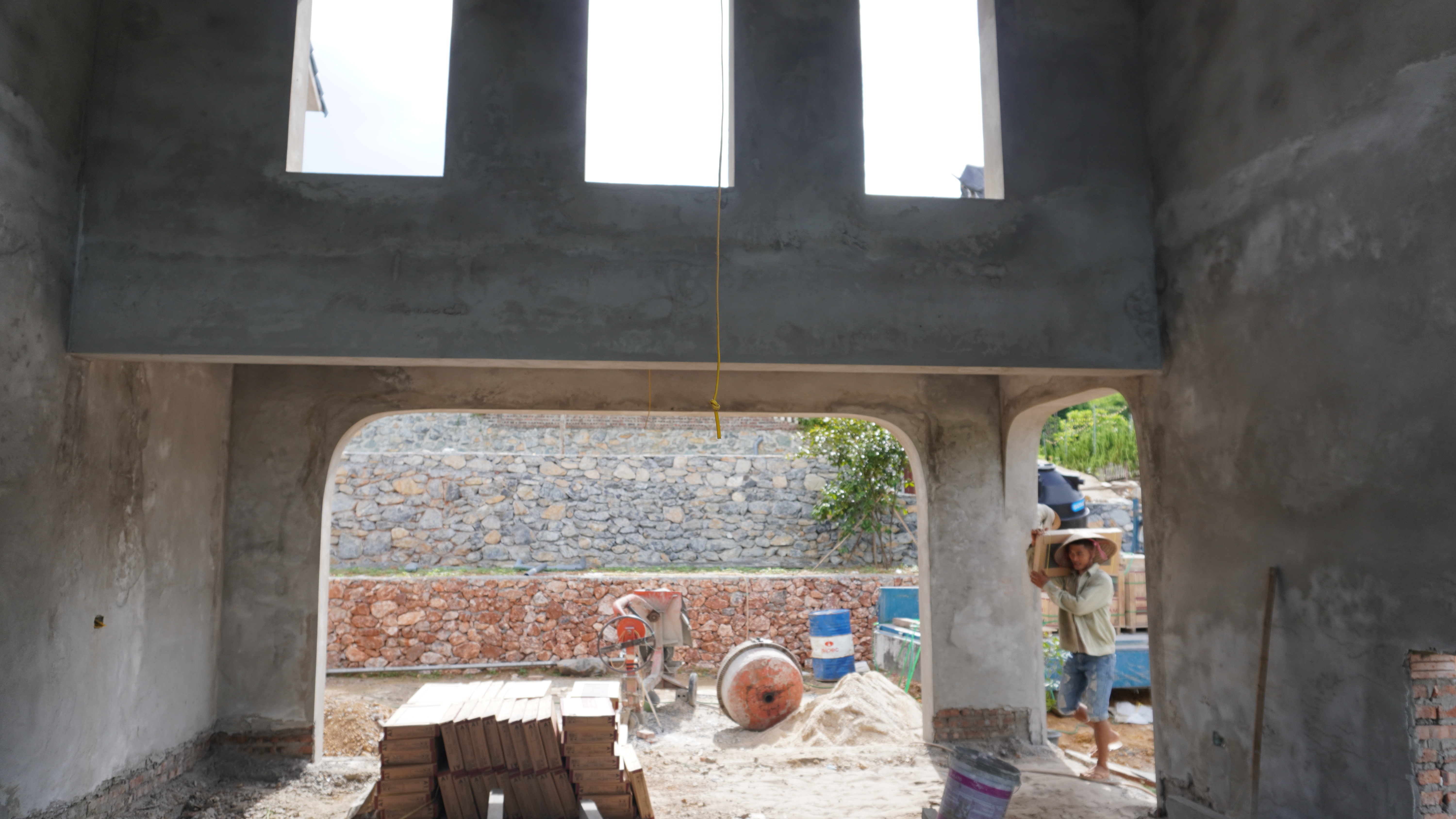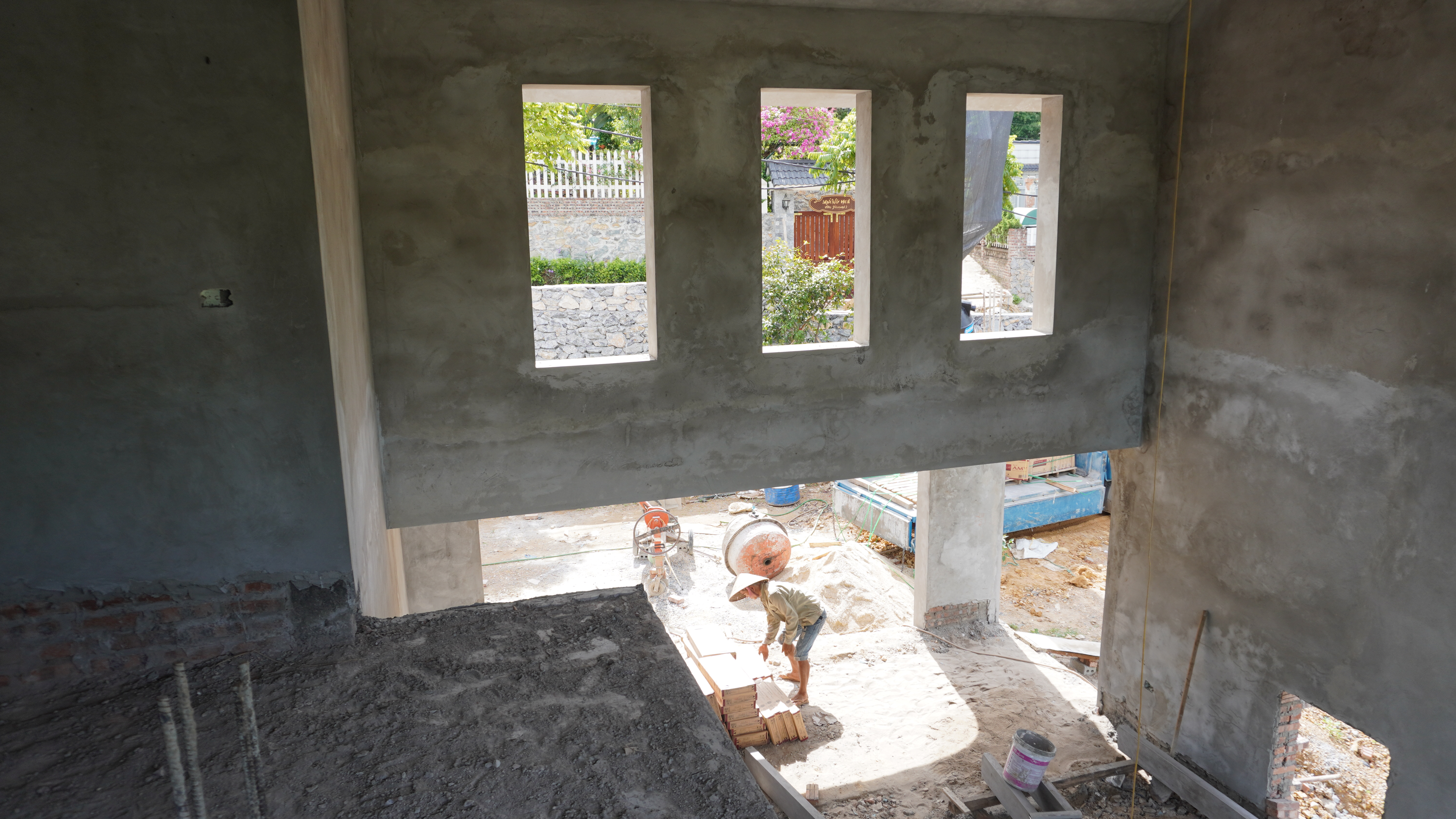 - Biệt thự đang được dọn dẹp, chuẩn bị công tác san gạt để lát gạch.